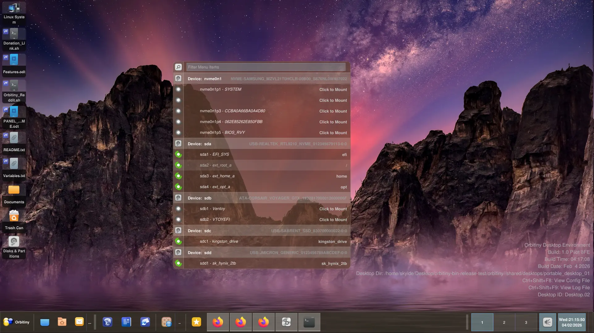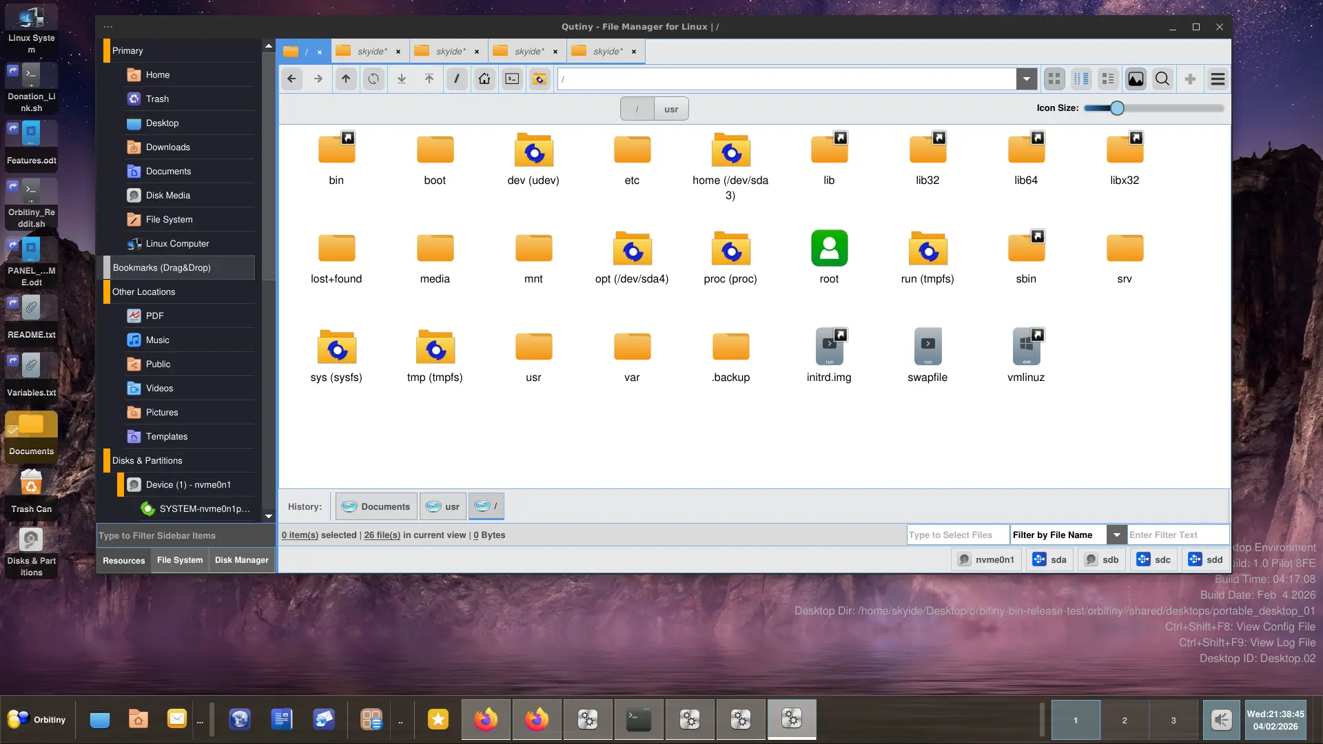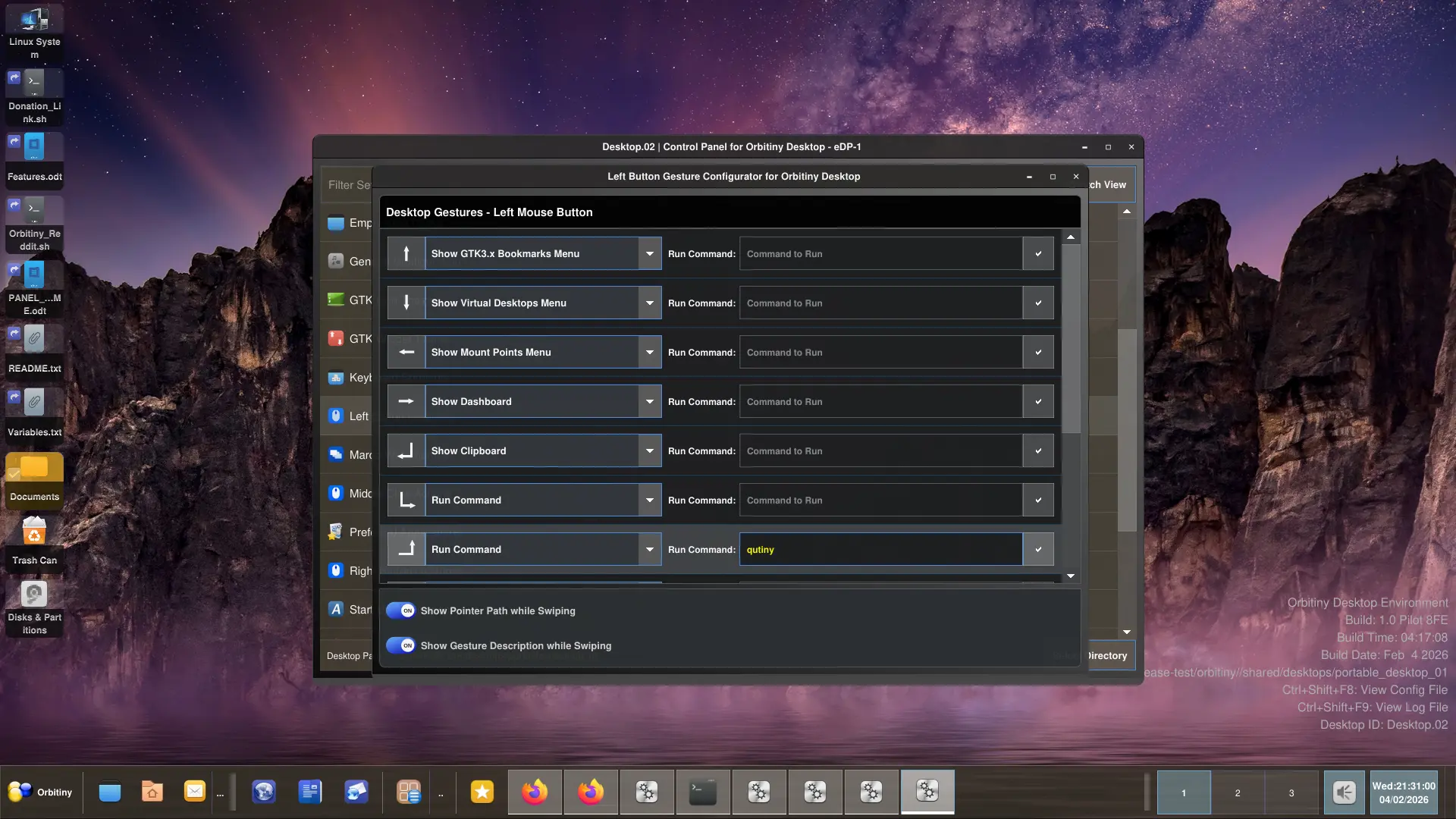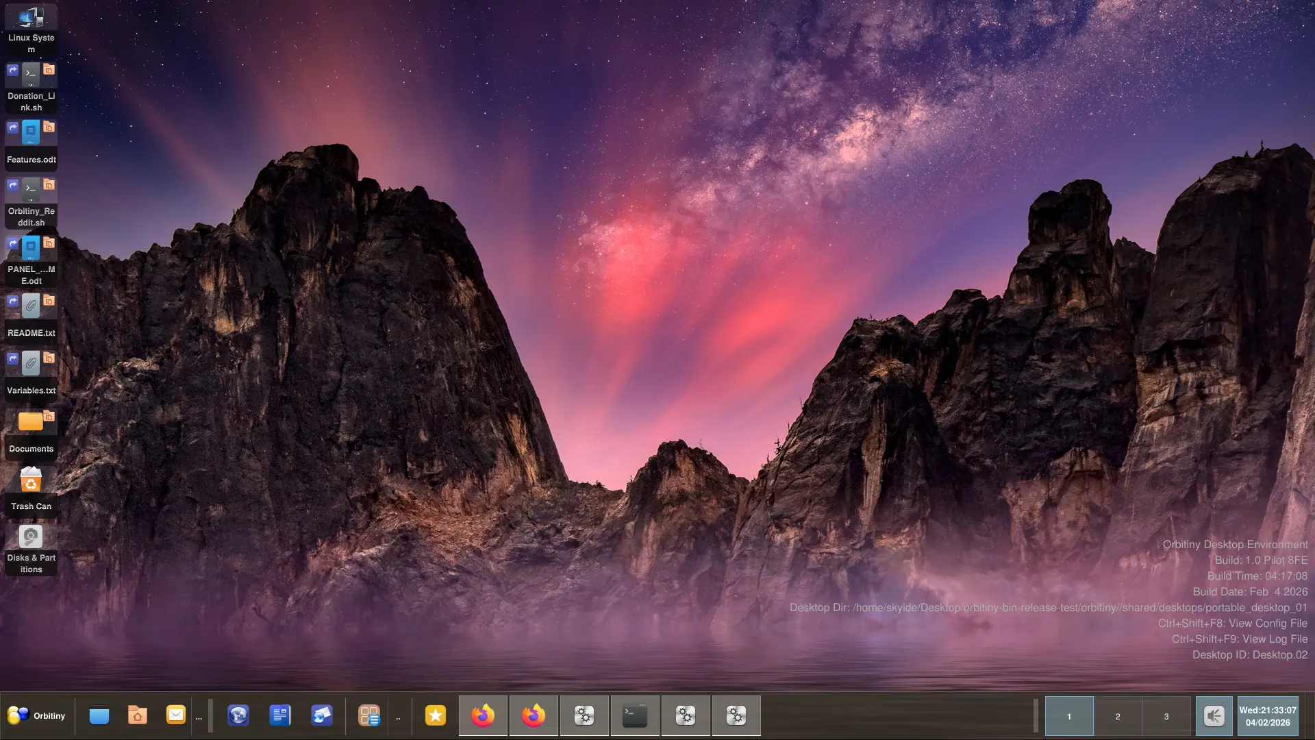 Built from the ground up over the course of 9 years (and counting) in Qt and coded in C++, Orbitiny Desktop is a new and innovative desktop environment for X11 based Linux operating systems, bringing you exclusive features and functionalities unavailable in other desktop environments.