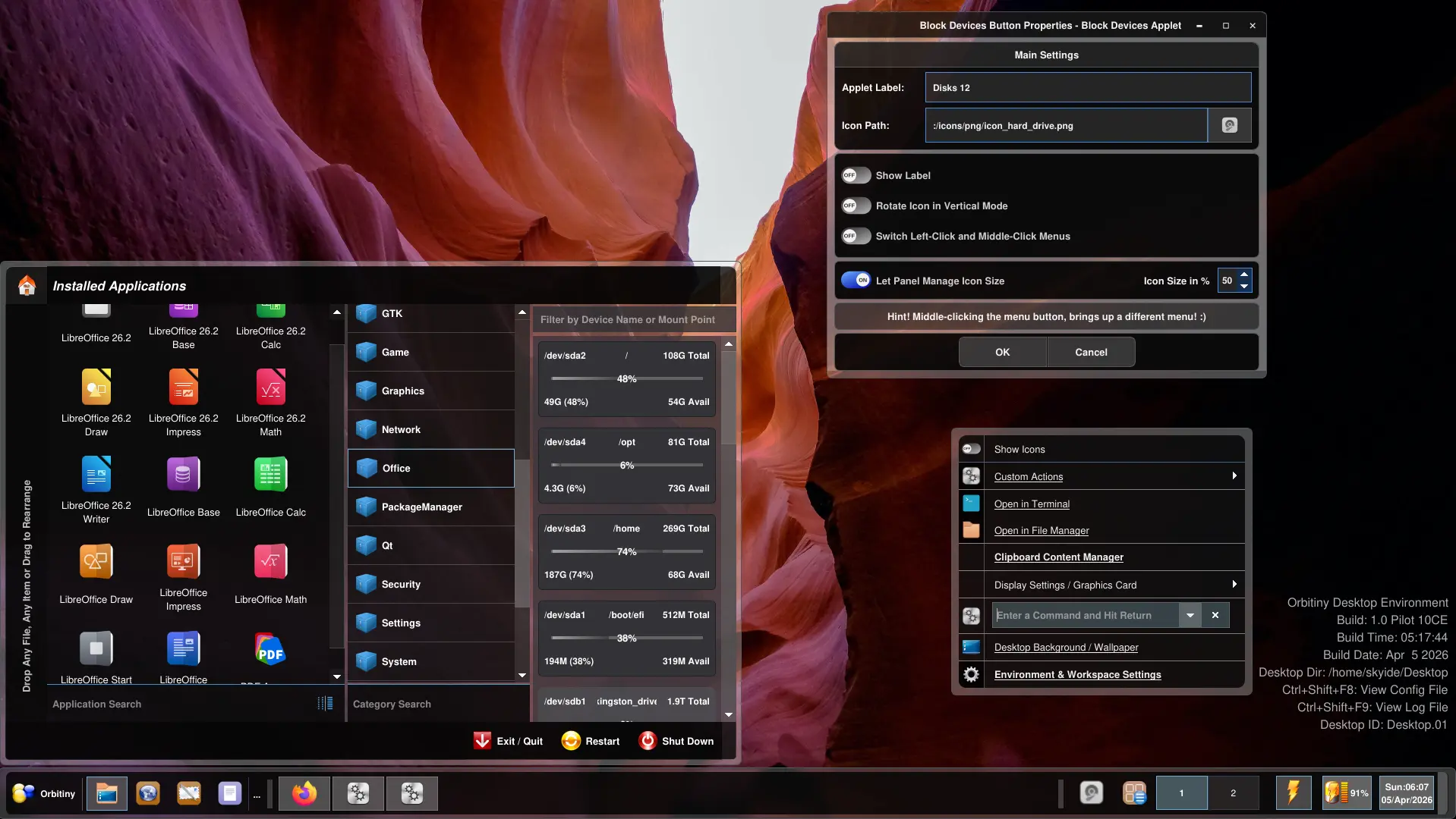 As usual, more updates will follow. Also, to people not aware, unlike most other Linux desktops out there, Orbitiny’s panel has full Drag&Drop capabilities. You can drag and drop any file, any folder (directory) to it, from the desktop or a file manager – any modern file manager like Nemo, Nautilus, Dolphin and of course, Orbitiny’s own file manager, Qutiny. It works as it is, no panel Edit mode required. You can also reposition the panel to any side of the screen by dragging its panel handle. You can even drag a URL from your browser to it and I have other ideas in mind but more on that later 🙂