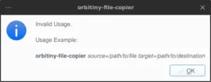 $ /opt/orbitiny/orbitiny-file-copier source=/home/$USER/Desktop/dir1/some-iso-file.iso target=/home/$USER/Desktop/dir2 target=/home/$USER/Desktop